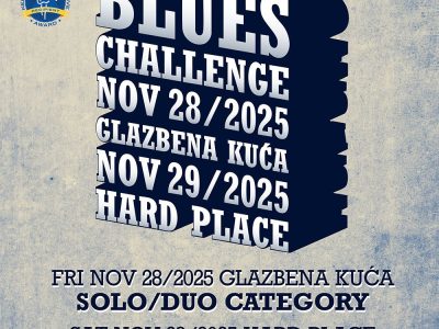 17th Croatian Blues Challenge Mjesto održavanja: Zagreb • Petak, 28.11.2025. Solo/duo kategorija @ Glazbena kuća • Subota, 29.11.2025. Band kategorija @ Hard Place
