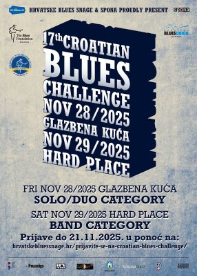 17th Croatian Blues Challenge Mjesto održavanja: Zagreb • Petak, 28.11.2025. Solo/duo kategorija @ Glazbena kuća • Subota, 29.11.2025. Band kategorija @ Hard Place