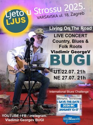 Poznati zagrebački blues i country glazbenik Vladimir Georgev Bugi i ovog ljeta svira na festivalu Ljeto u Strossu u Varšavskoj ulici broj 18.